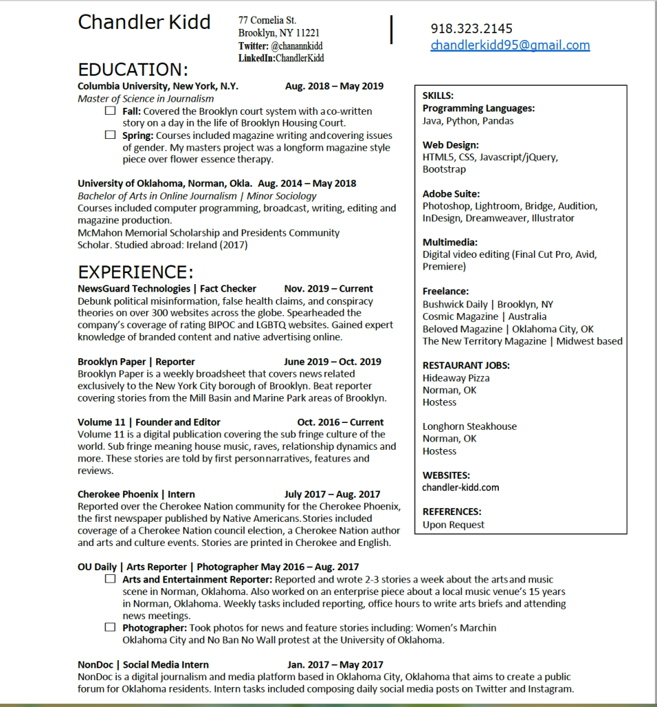 Resume Here is a screen grab of my resume. Share this: Click to share on X (Opens in new window) X Click to share on Facebook (Opens in new window) Facebook Like Loading...